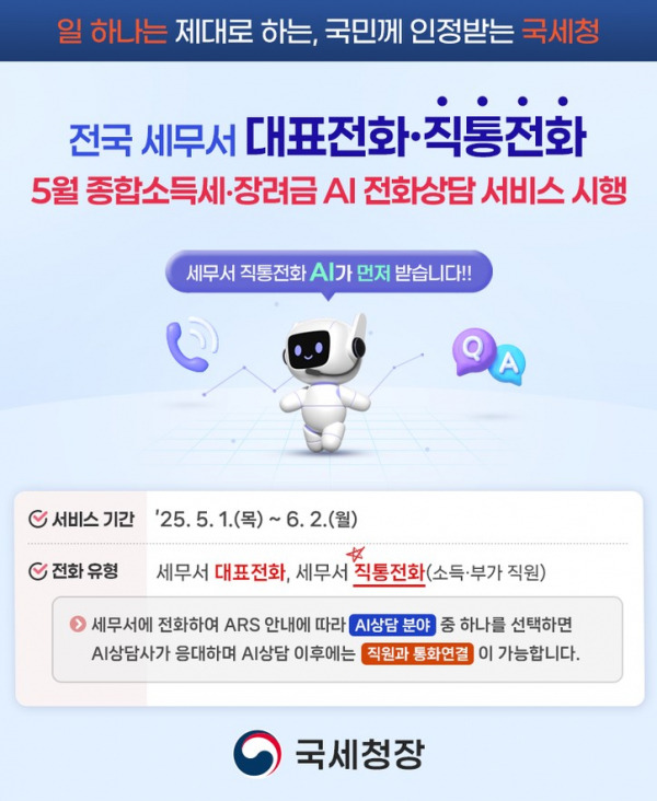 현재 국세청 무료법률상담의 약 80% 이상을 AI가 처리하고 있어